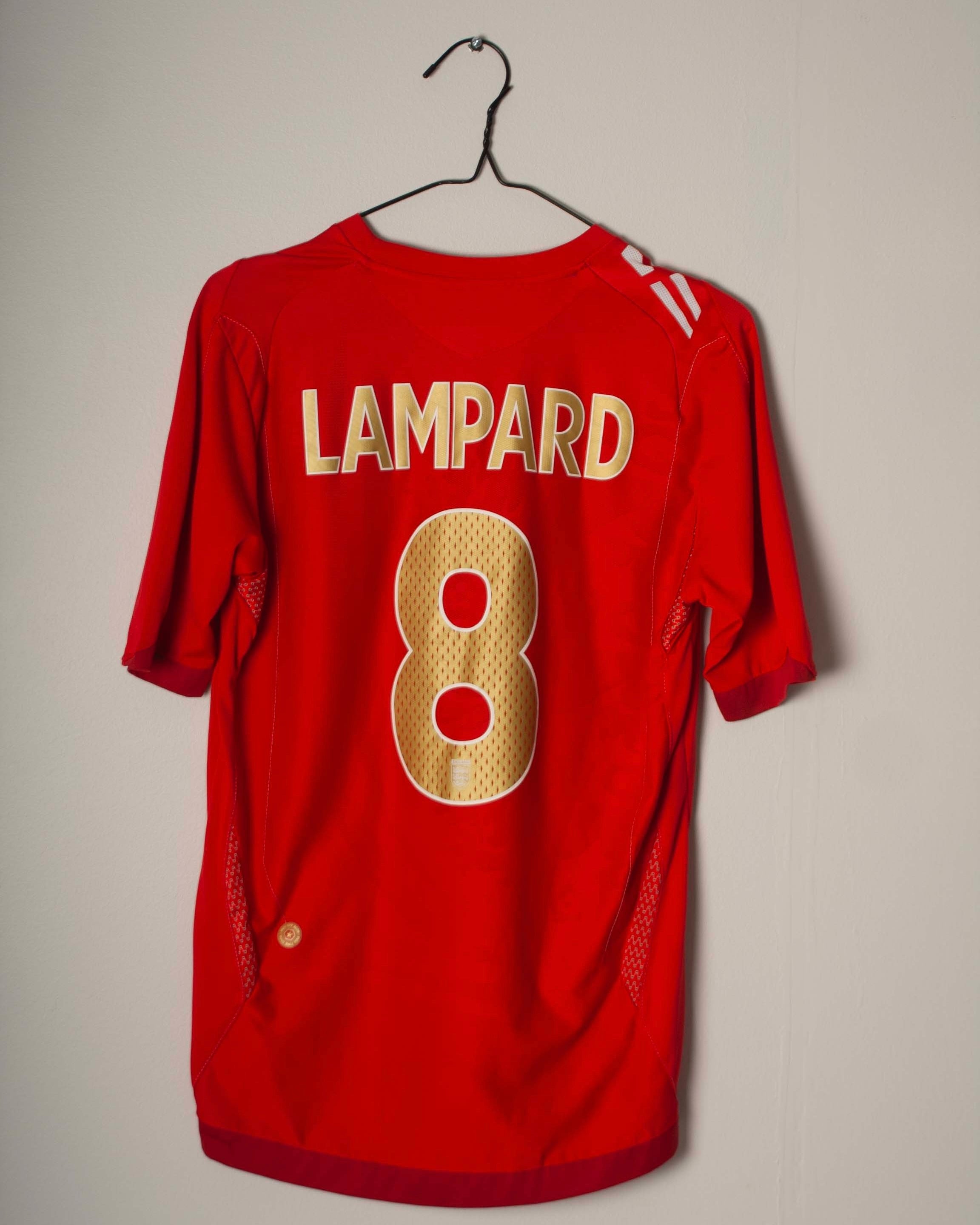 Showcase your love for classic English football with the Umbro England 2006 Away Football Shirt featuring the iconic 'LAMPARD' name and number. This red shirt, worn during the 2006 World Cup, brings back memories of Frank Lampard’s skill and determination on the international stage. Constructed with Umbro’s traditional design and breathable fabric, this jersey ensures comfort, whether you’re in the stands or adding it to your collection. The St. George’s cross on the sleeves and subtle white details add a touch of national pride, making it a must-have for fans of the Three Lions and one of its most legendary midfielders.